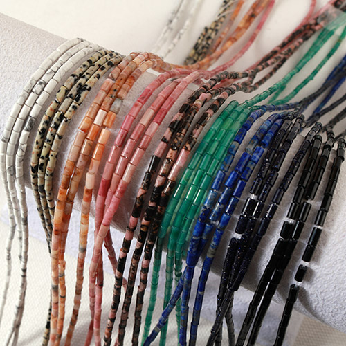- 싼비즈 [5500-02]원석 원통막대 약2x4mm ,반줄(약40개)