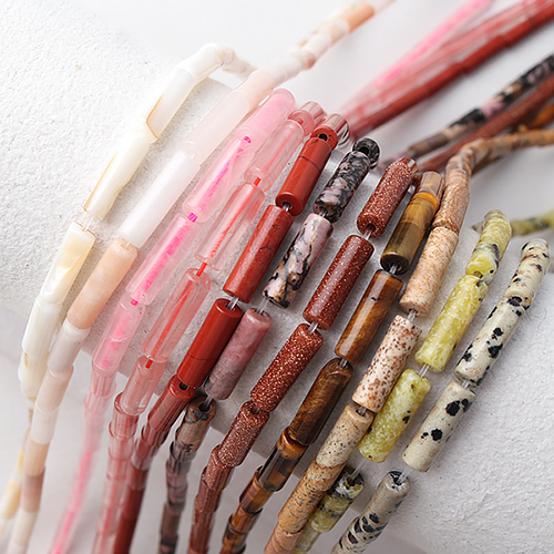 - 싼비즈 [5501-02]원석 원기둥 약4x13mm ,반줄(약14개)