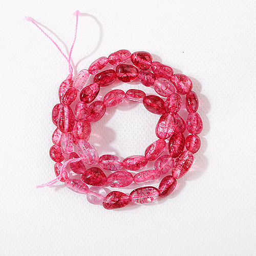 - 싼비즈 [5480-09]원석 못난이 약6x8mm 천연석 핑크크랙수정 7월탄생석/루비 ,반줄(약19cm)