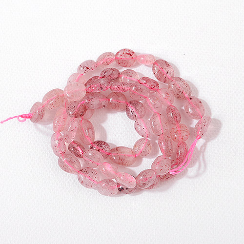 - 싼비즈 [5480-08]원석 못난이 약6x8mm 딸기석 ,반줄(약19cm)