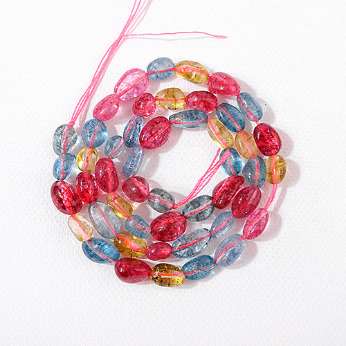- 싼비즈 [5480-10]원석 못난이 약6x8mm 멀티컬러침수정 ,반줄(약19cm)