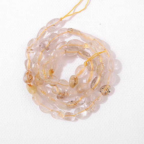 - 싼비즈 [5480-02]원석 못난이 약6x8mm 금침수정 ,반줄(약19cm)