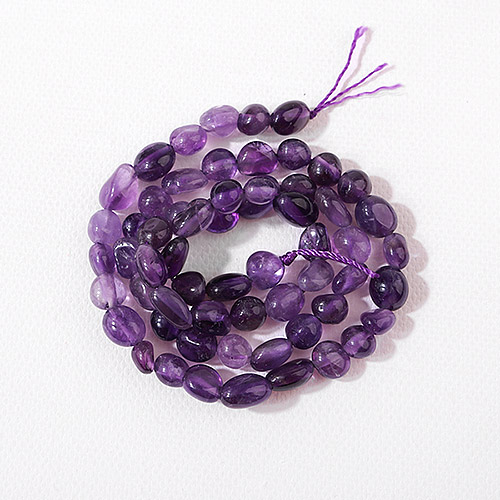 - 싼비즈 [5480-13]원석 못난이 약6x8mm 천연석 자수정 2월탄생석 ,반줄(약19cm)