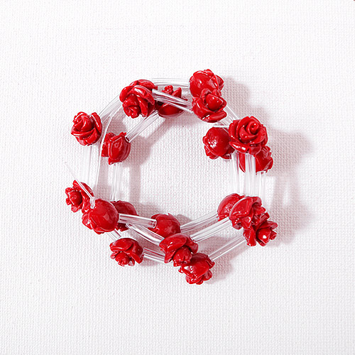 - 싼비즈 [5519-02]합성송석꽃 합성산호장미꽃 6mm ,1줄(약48개)