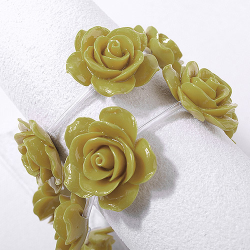 - 싼비즈 [5512-11]송석꽃 활짝핀 장미꽃 옆구멍 28mm 올리브 ,1개