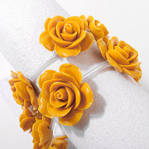 - 싼비즈 [5512-10]송석꽃 활짝핀 장미꽃 옆구멍 28mm 머스타드 ,1개