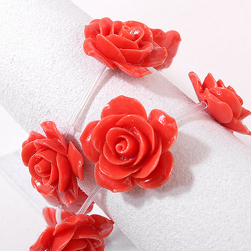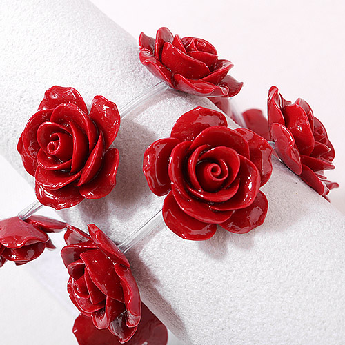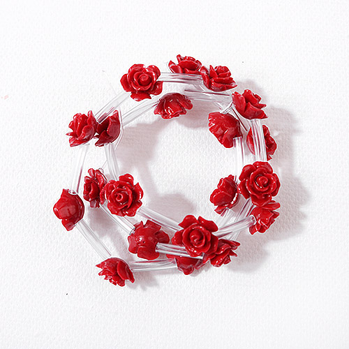 - 싼비즈 [5515-01]송석꽃 활짝핀 장미꽃 옆구멍 10mm 레드 ,1개