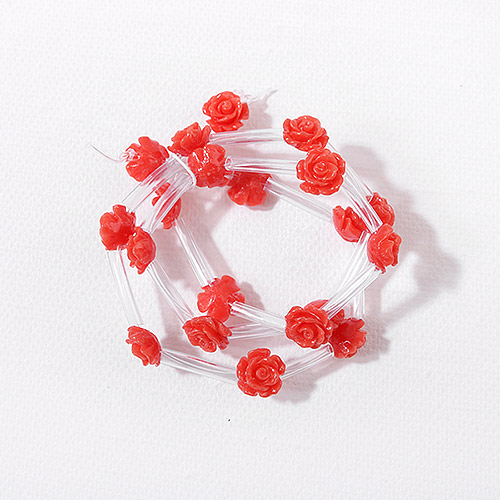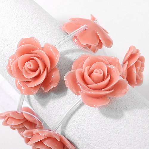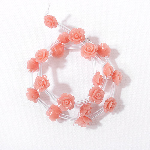 - 싼비즈 [5515-06]송석꽃 활짝핀 장미꽃 옆구멍 10mm 코랄 ,1개
