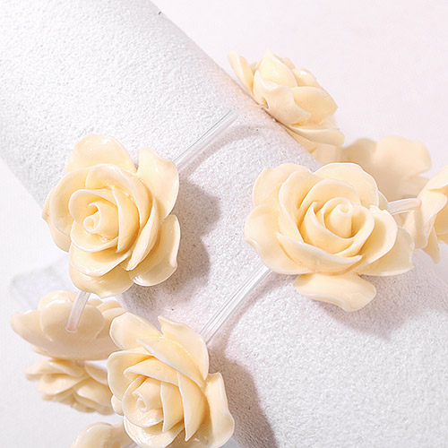- 싼비즈 [5515-08]송석꽃 활짝핀 장미꽃 옆구멍 10mm 아이보리 ,1개