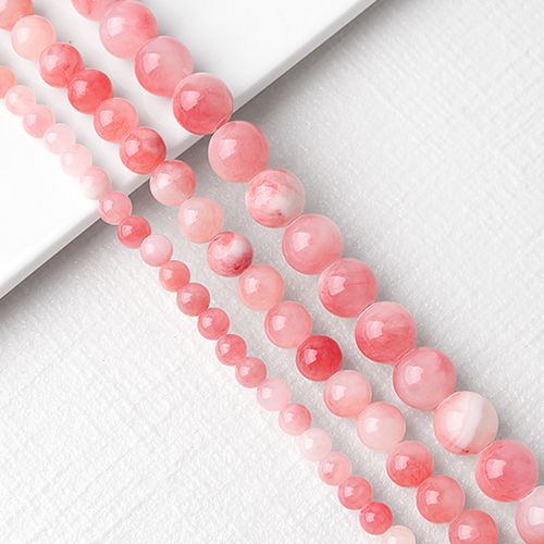 - 싼비즈 [5217-02]원석 라운드 채운옥 칠색옥 천연석 착색 4/6/8mm 핑크 ,반줄