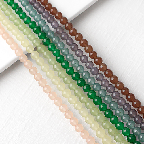 - 싼비즈 [5623-01]원석 라운드 천연옥 착색 4mm 그린 ,반줄(약40개)