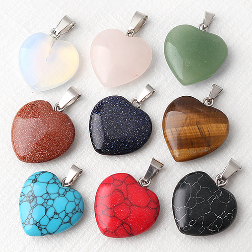 - 싼비즈 [5472-05]원석 하트펜던트 25mm 천연석 ,1개
