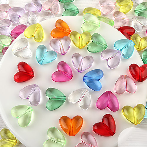 - 싼비즈 [6491-09]아크릴통과형 하트세로홀 18mm 멀티랜덤 ,10개