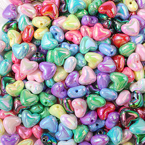 - 싼비즈 [6415-09]아크릴통과형 하트AB오로라 소10mm 멀티랜덤 ,40개