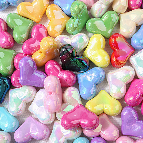 - 싼비즈 [6415-10]아크릴통과형 하트AB오로라 대17mm 멀티랜덤 ,10개