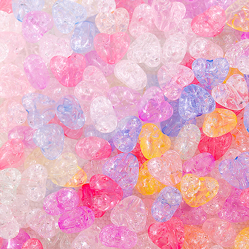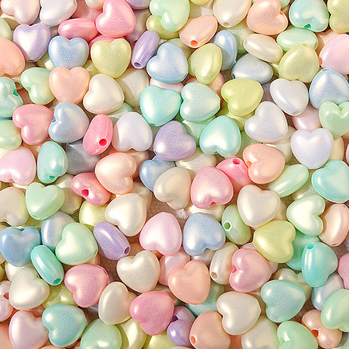 - 싼비즈 [6417-19]아크릴통과형 펄믹스 하트 10mm 파스텔랜덤 ,25개