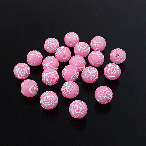 - 싼비즈 [645-04]야광볼 장미볼 8mm 핑크 ,20개