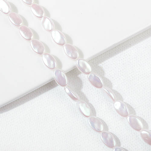 - 싼비즈 [6386-01]아크릴진주 오로라펄 납작타원 6x10mm ,1줄(40개)