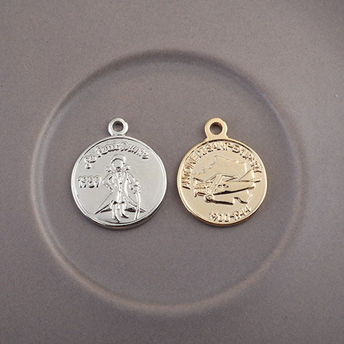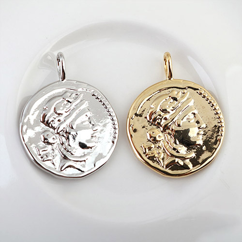 - 싼비즈 [7329-02]메탈펜던트 옴므A코인 18mm ,1개