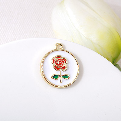 - 싼비즈 [7356-03]에폭펜던트 장미한송이화이트 18mm 골드 ,1개