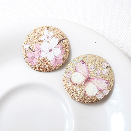 - 싼비즈 [7215-15]에폭펜던트 원반벚꽃나비 25mm 무광골드 ,1개