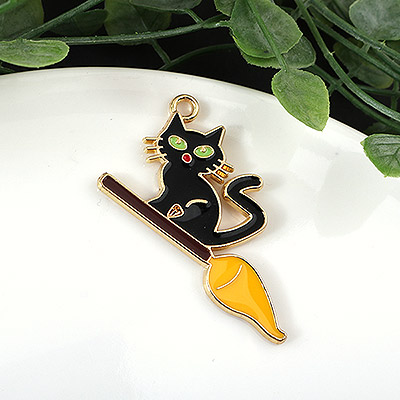 - 싼비즈 [7353-04]시즌에폭펜던트 빗자루고양이 28x38mm 골드 ,1개