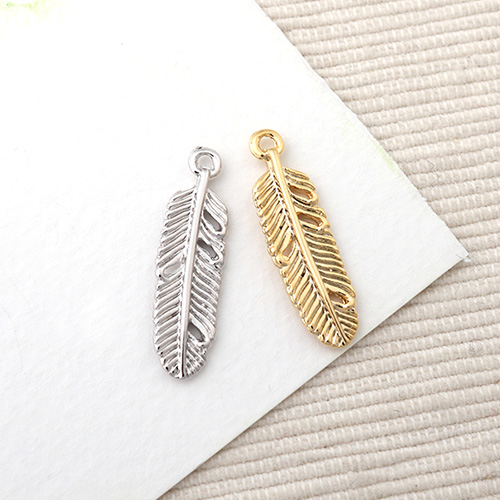 - 싼비즈 [7128-05]메탈펜던트 깃털나뭇잎 7x23mm ,1개