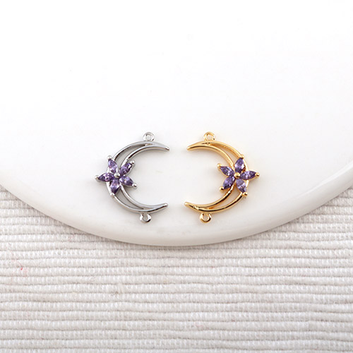 - 싼비즈 [7312-20]큐빅펜던트 큐빅달꽃양고리 13x16mm 퍼플 ,1개