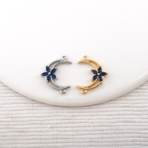 - 싼비즈 [7312-21]큐빅펜던트 큐빅달꽃양고리 13x16mm 블루 ,1개