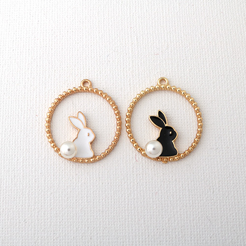 - 싼비즈 [7275-06]에폭펜던트 앨리스진주토끼링 22mm 골드 ,1개