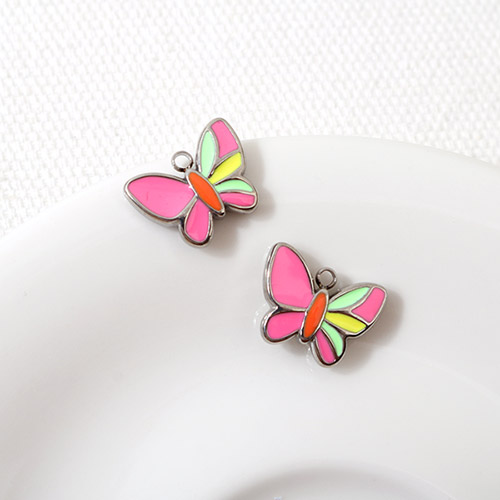 - 싼비즈 [8-117-02]써지컬스틸 펜던트 에폭핑크나비 14x11mm ,1개