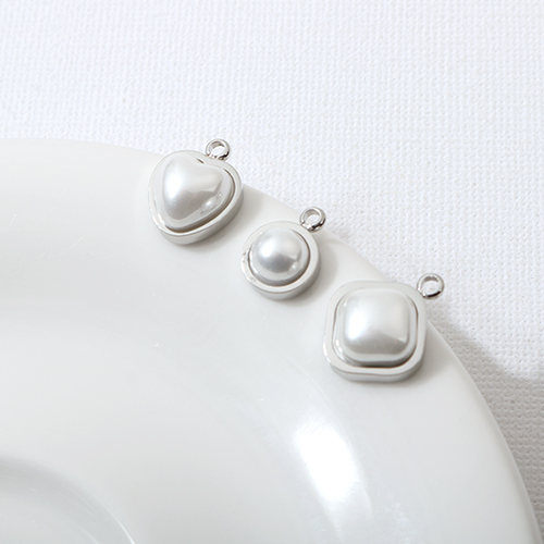 - 싼비즈 [8-046-01]써지컬스틸 펜던트 진주하트/원/사각 10/8/10mm 무도금,1개