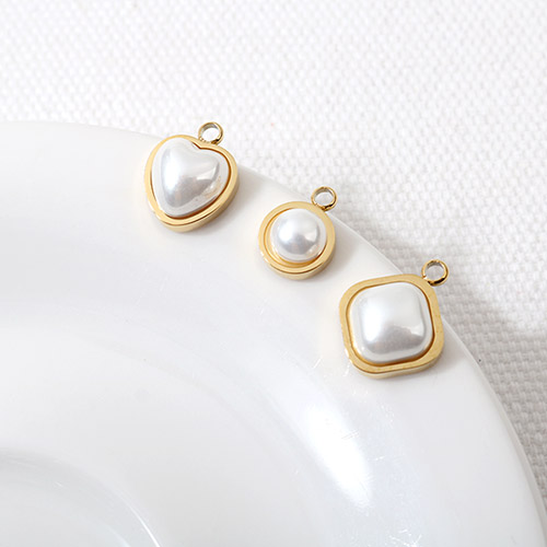 - 싼비즈 [8-046-01]써지컬스틸 펜던트 진주하트/원/사각 10/8/10mm 골드 ,1개
