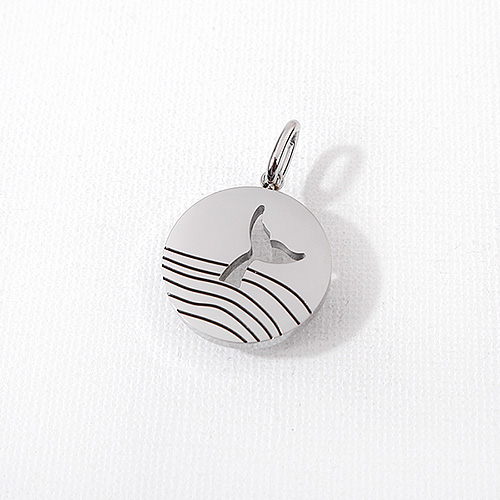 - 싼비즈 [8-129-16]써지컬스틸 펜던트 고래파도원+고리 20mm ,1개