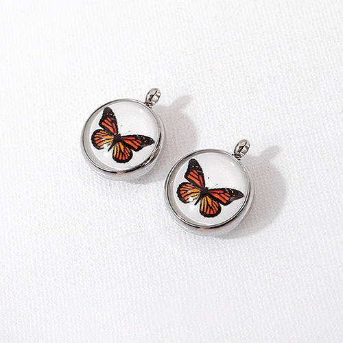 - 싼비즈 [8-119-24]써지컬스틸 펜던트 에폭야광 오렌지나비 17mm ,1개