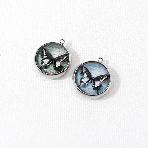 - 싼비즈 [8-119-23]써지컬스틸 펜던트 에폭야광 나비 17mm ,1개