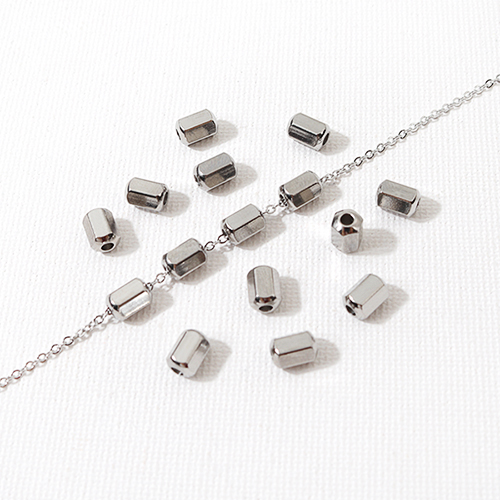- 싼비즈 [8-034-08]써지컬스틸 펜던트 육각기둥 4x6mm 무도금 ,1개