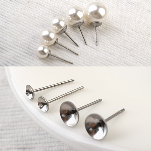 - 싼비즈 [8-433-03]써지컬스틸 진주포스트 4/5/6/8/10mm 고무클러치 ,1쌍(2개)