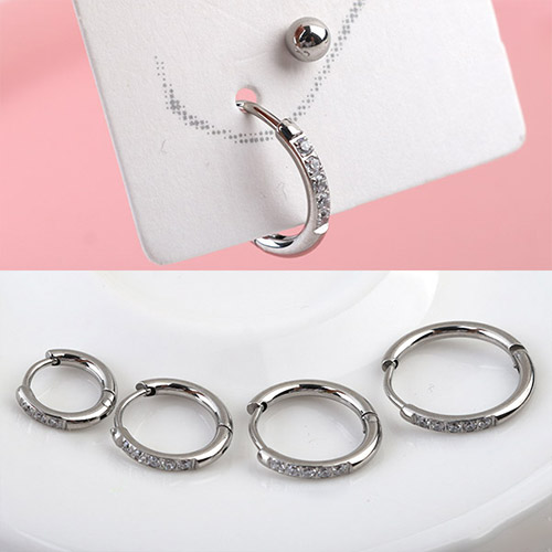- 싼비즈 [8-411-01]써지컬스틸 큐빅링귀걸이 2x8/10/12/14mm ,1쌍(2개)