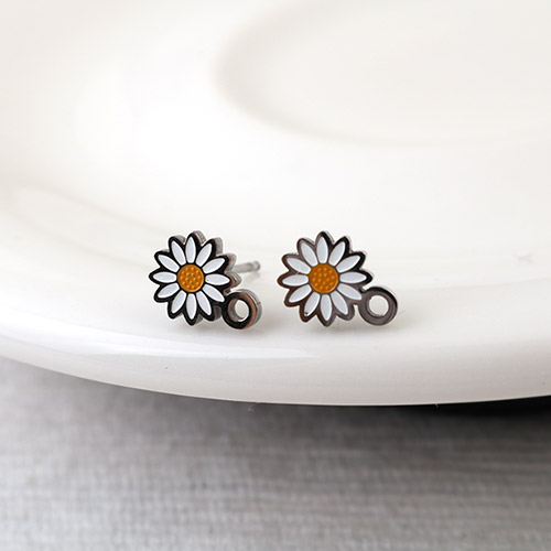 - 싼비즈 [8-432-01]써지컬스틸 데이지꽃포스트 6x8mm 고무클러치 ,1쌍(2개)