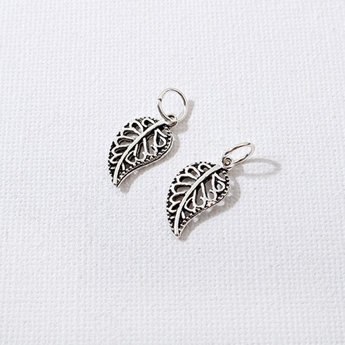 - 싼비즈 [8-542-20]순은펜던트 펀칭나뭇잎+O링 9x16mm 실버925 은엔틱 ,1개