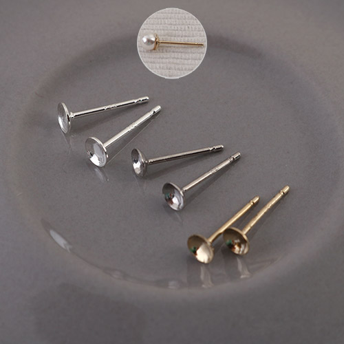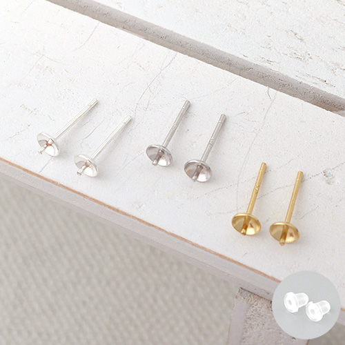 - 싼비즈 [8-601-04]순은귀걸이 컵포스트 4mm 실버925 고무클러치 ,1쌍(2개)