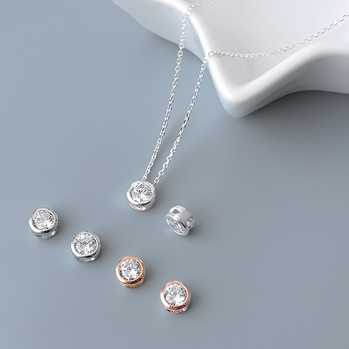 - 싼비즈 [8-508-01]순은펜던트 큐빅알캡통과형 5mm 실버925 ,1개