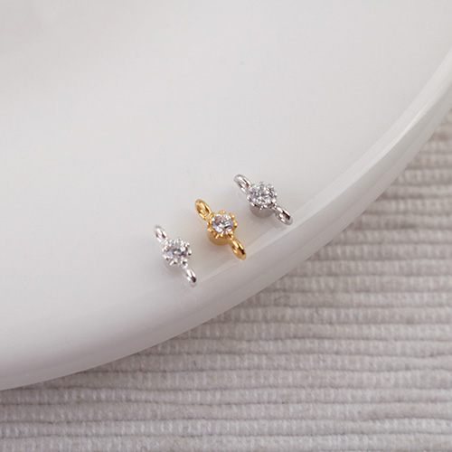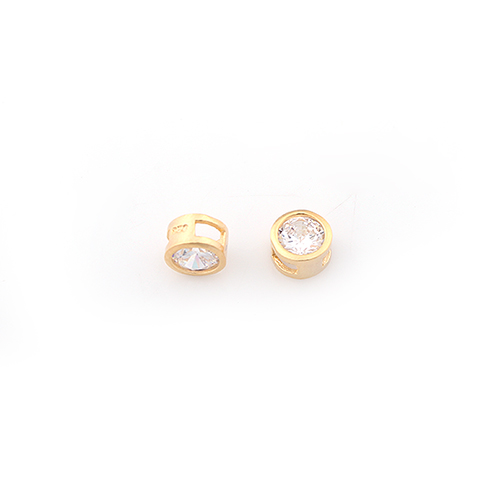 - 싼비즈 [8-508-03]순은펜던트 큐빅알캡통과형 6mm 실버925 골드 ,1개