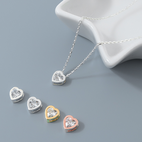 - 싼비즈 [8-508-04]순은펜던트 큐빅하트캡통과형 6mm 실버925 ,1개