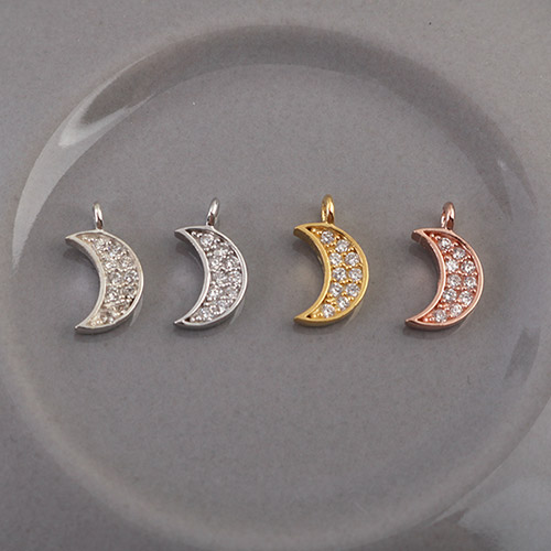 - 싼비즈 [8-507-04]순은펜던트 큐빅반달 4x6.5mm 실버925 ,1개