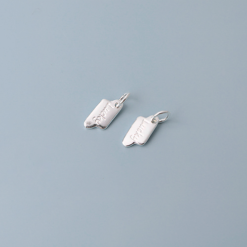 - 싼비즈 [8-512-16]순은펜던트 쭈글럭키태그+O링 7.5x10.5mm 실버925 무도금 ,1개
