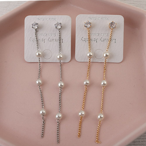 - 싼비즈 [9-597-05]큐빅진주볼체인포스트 4x70mm 티탄침 고무클러치 ,1쌍(2개)