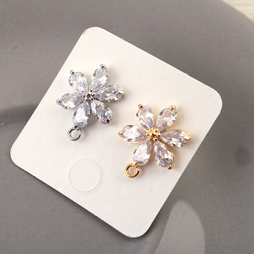- 싼비즈 [9-603-03]큐빅다섯꽃포스트 8x10mm OR스텐레스침 고무클러치 ,1쌍(2개)