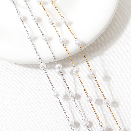 - 싼비즈 [8-231-04]써지컬스틸 체인 아크릴진주 4mm ,약49cm